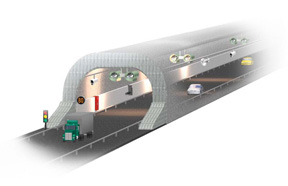 Tunnels can be classified into four categories by length: short tunnels (L<250m), middle long tunnels (250m<L<1000m), long tunnels (1000m<L<3000m) and super long tunnels (L>3000m). The longer the tunnel, the more monitoring devices are needed. According to the sub-systems, the tunnel monitoring system can be divided into: the lighting system, a ventilating system, traffic guidance system, CCTV system, fire alarm system, fire control system, emergency telephone system, broadcasting system, and additional tertiary tasks. The tunnel monitoring system can be classified into four groups by device: testing devices, controlling devices, display devices and communication devices. Testing devices include fire-alarm probes, vehicle detectors, COVI, visibility sensors, and wind sensors. Controlling devices include a traffic area controller, illuminated area controller, and ventilated area. Display devices include a computer workstation, large-scale monitor, and solar alarm. Finally the communication devices include switches, hubs, serial signal transmission equipment, optical transmitter and receiver.